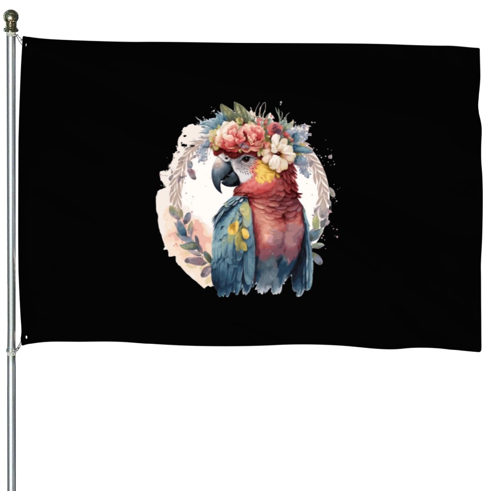 Buy stunning Watercolor Parrot Macaw Bird Flower Crown Pet Bird House Flags or see more House Flags products at Printblur right now to receive many amazing discounts!