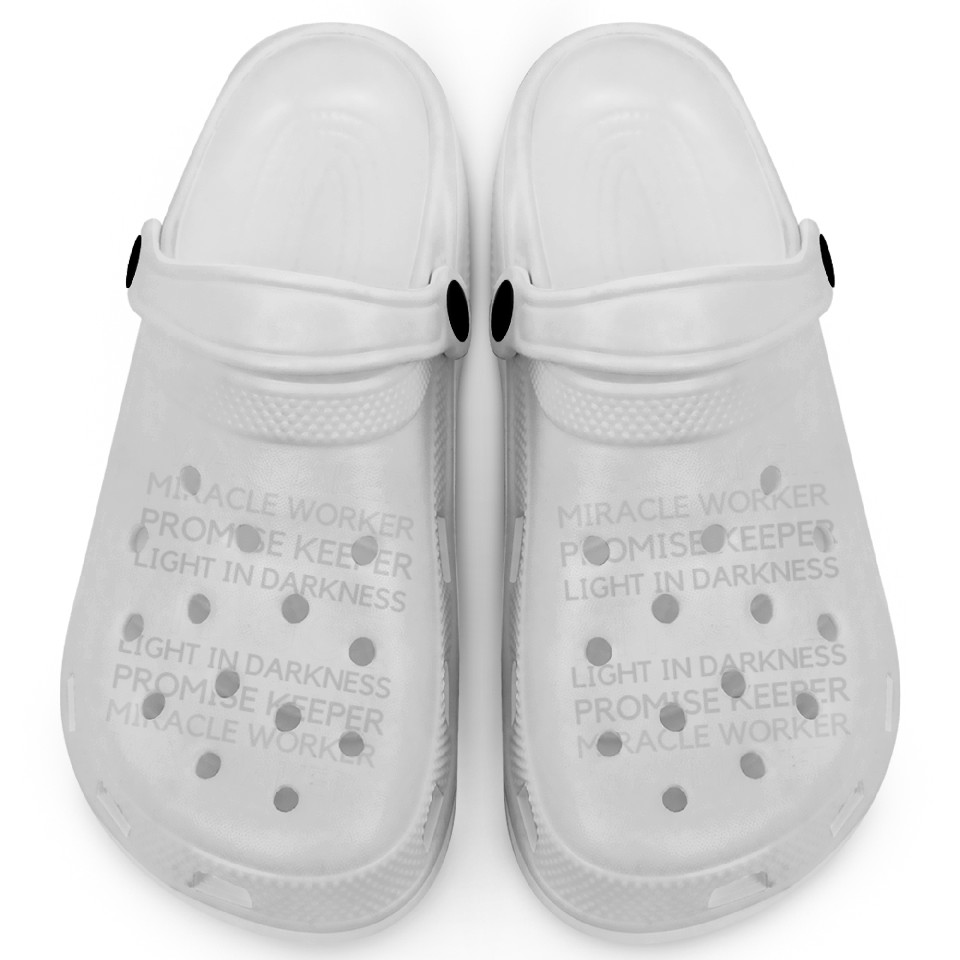 The item hot trend you're looking at is Waymaker Miracle Worker Promise Keeper John 316 Clogs For Kids WHITE belong theme Clogs at Printblur