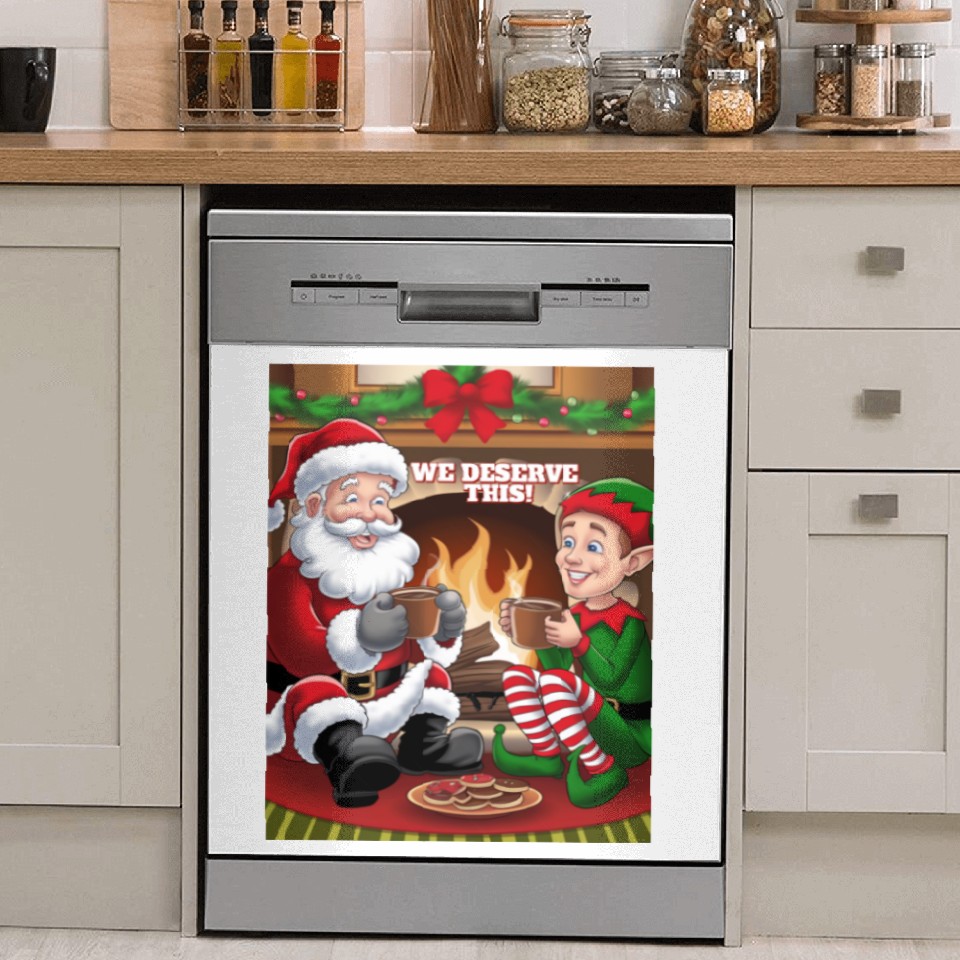Own fascinating We Deserve This! Santa Claus And Elf Relaxing Dish Washer Covers or see more Dish Washer Covers products now from Printblur shop to enjoy your shopping time!