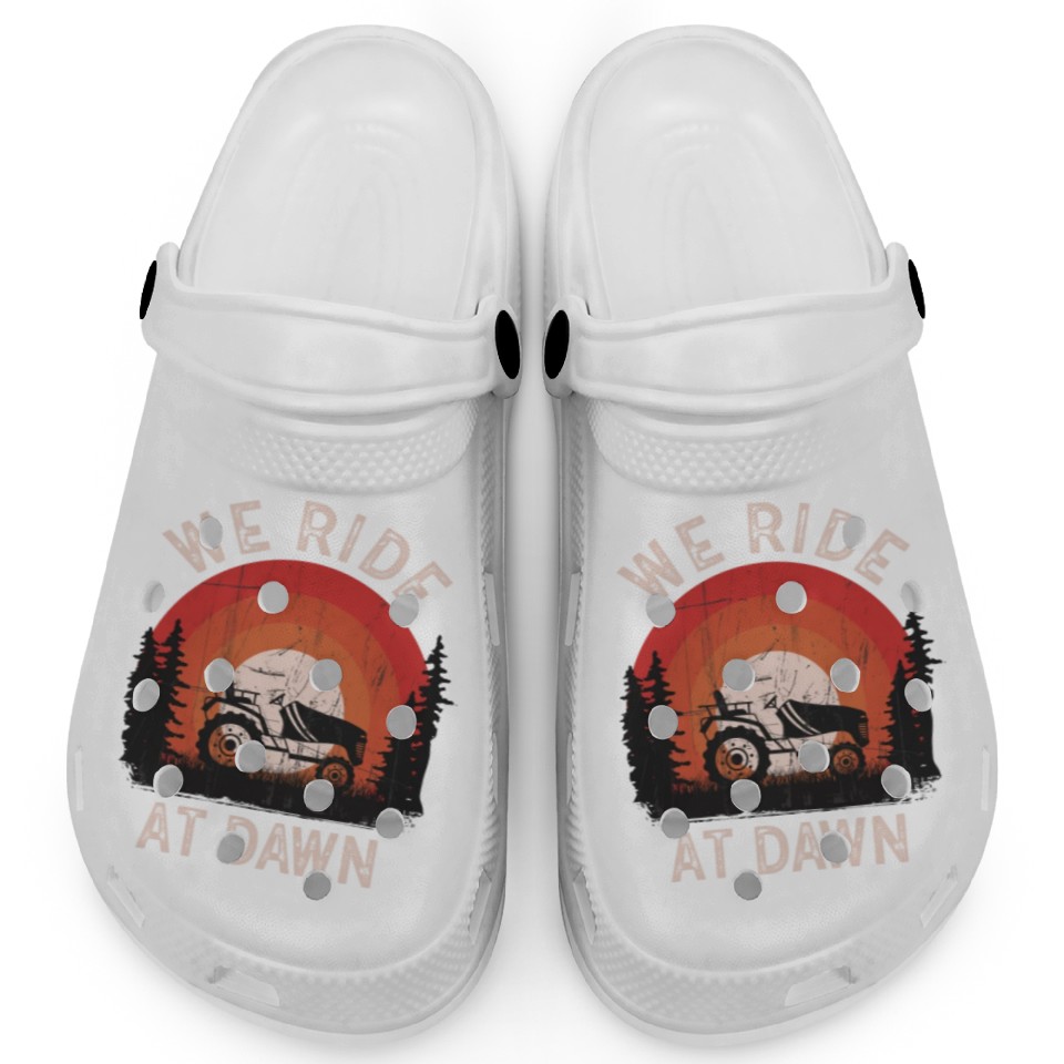 Own fascinating We Ride At Dawn Dad Lawn Mower Make Laugh Day Yard Clogs or see more Clogs products now from Printblur shop to enjoy your shopping time!