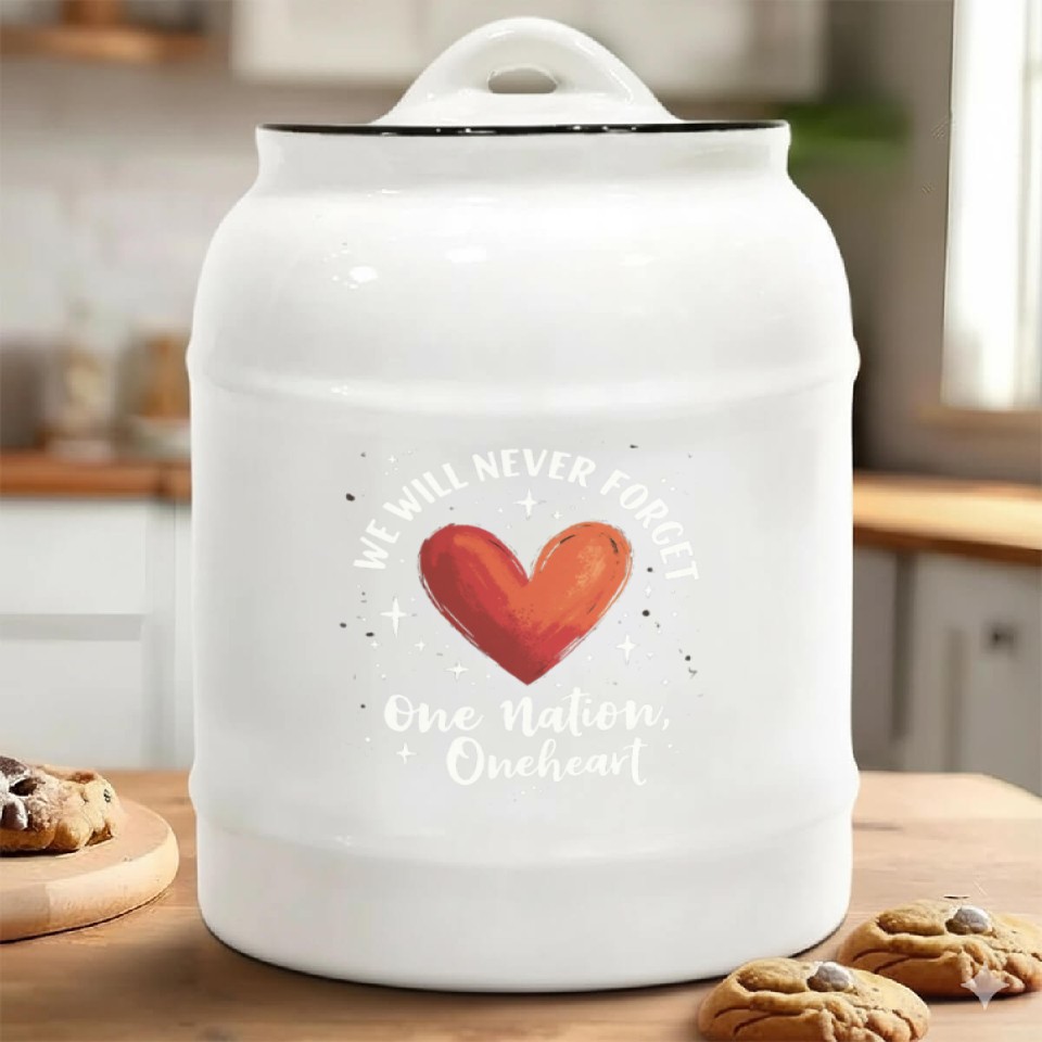 You are seeing a unique and impressive product We Will Never Forget One Nation One Heart Ceramic Cookie Jars For belong theme Ceramic Cookie Jars at Printblur