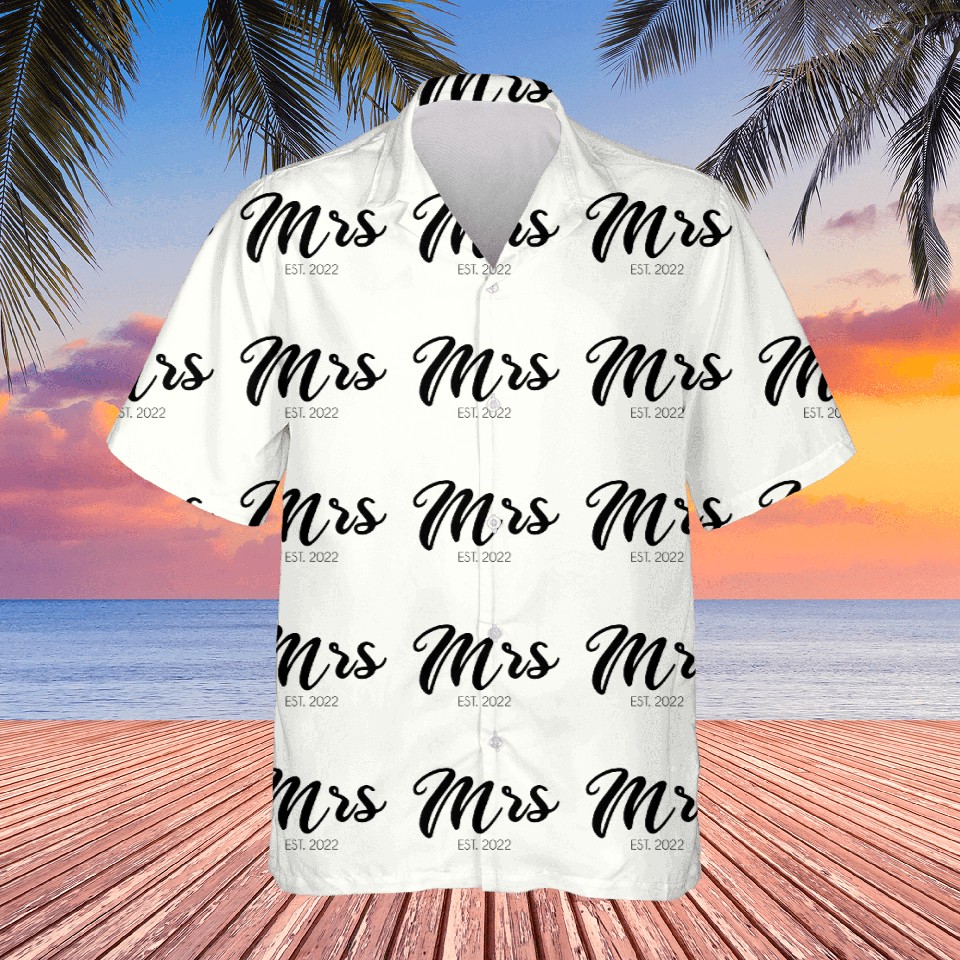 Own fascinating Wedding Mrs Est 2022 Bridal Bride Hawaiians or see more Hawaiians products now from Printblur shop to enjoy your shopping time!