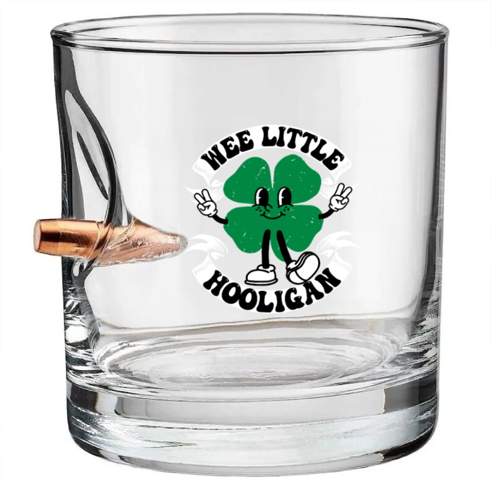 You're searching for a one-of-a-kind product Wee Little Hooligan Cute St. Patrick's Day Irish Bullet Whiskey Glasses For belong theme Bullet Whiskey Glasses at Printblur