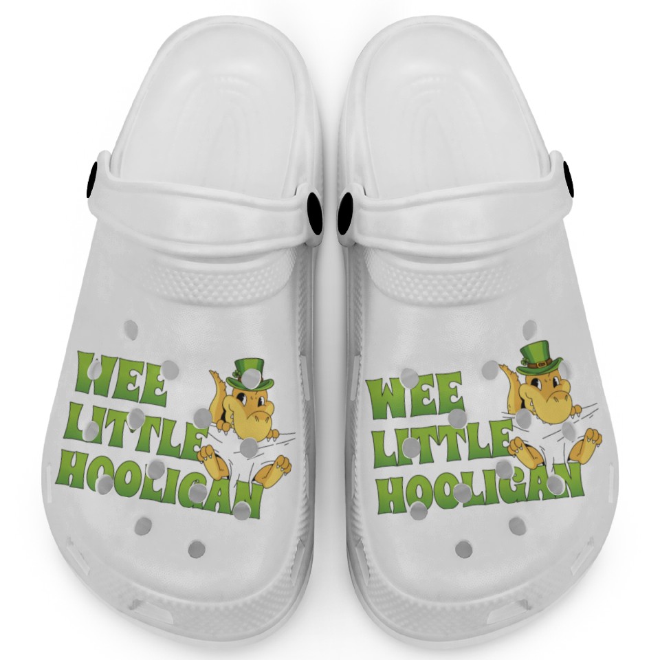 Buy eye-catching Wee Little Hooligan t-rex Dinosaur St Patrick Day Clogs or see more Clogs products at Printblur shop now to explore many surprises from our shop!