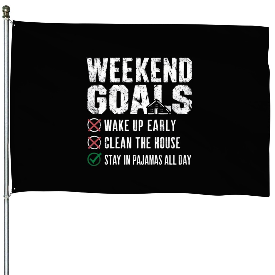 Buy stunning Weekend Goals: Stay in Pajamas All Day House Flags or see more House Flags products at Printblur right now to receive many amazing discounts!