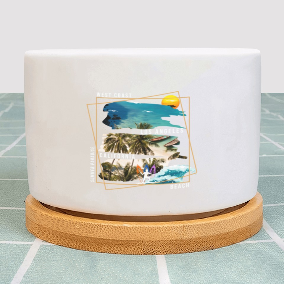 The product unique design you searched for is West Coast Los Angeles California Beach Plant Pots For WHITE belong theme Plant Pots at Printblur