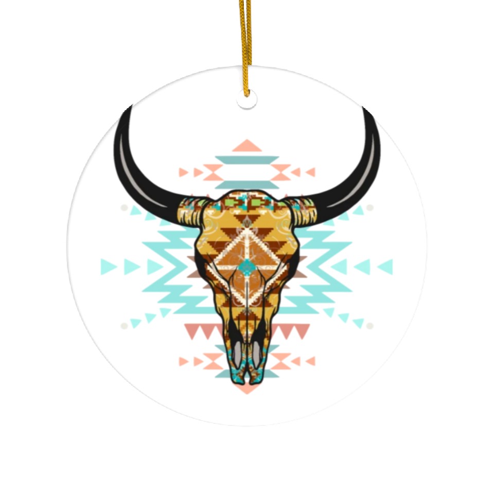 You are viewing an exclusive and elegant product Western Aztec Bull Skull Ceramic Ornaments For WHITE belong theme Ceramic Ornaments at Printblur