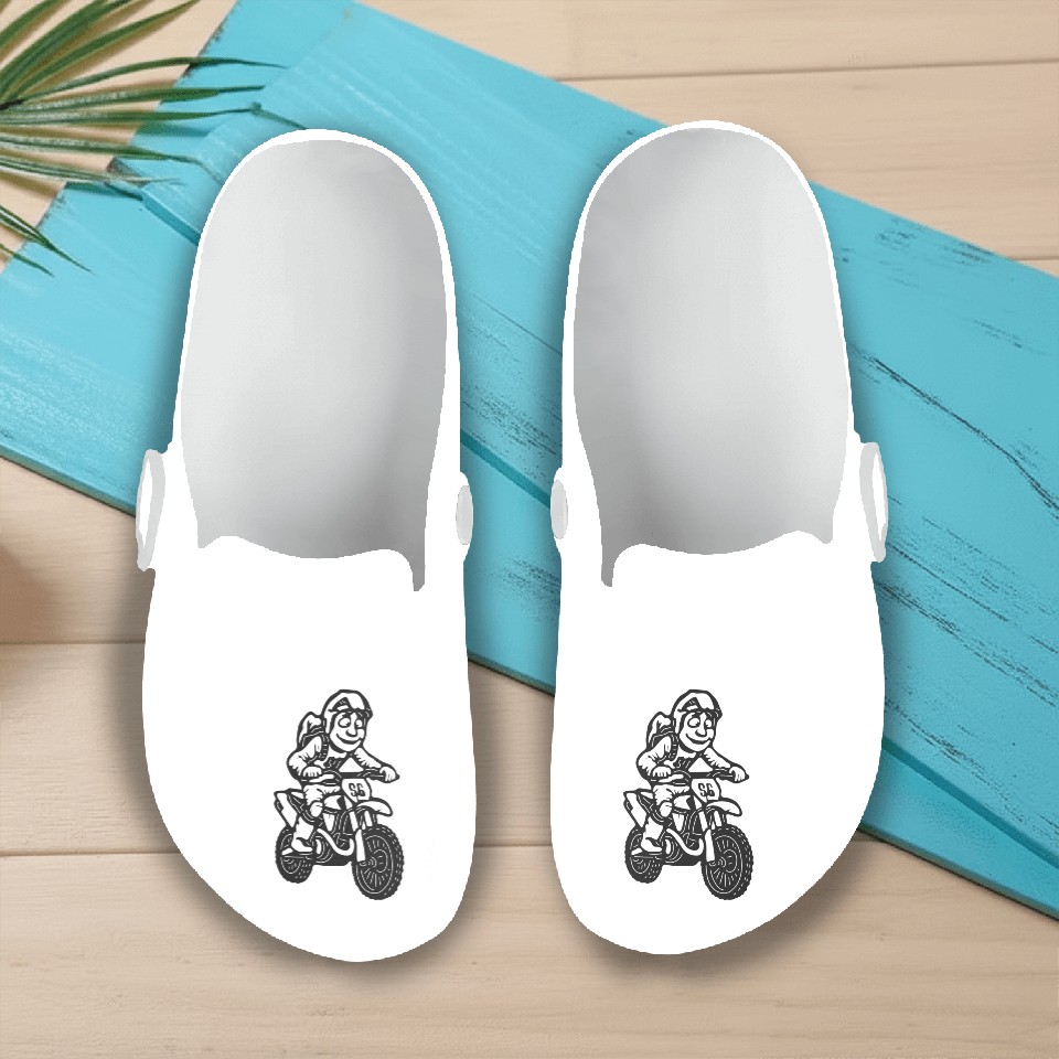 You are contemplating one of the best-selling products Wheelie Silly: Dirt Bike Comics & Rider Fails Slip On Clogs For Women WHITE belong theme Slip-On Clogs at Printblur
