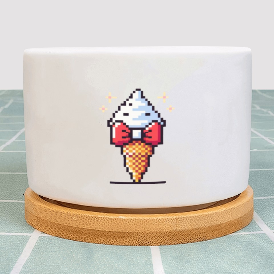 Whimsical 8-Bit Ice Cream: Retro Bow Tie Delight Plant Pots