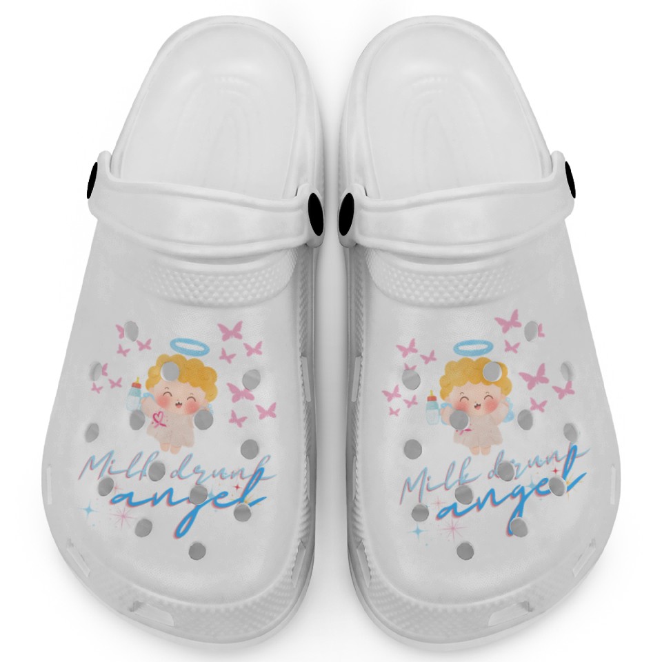You are contemplating one of the best-selling products Whimsical Angel with Milk Bottle Design Clogs For Kids WHITE belong theme Clogs at Printblur