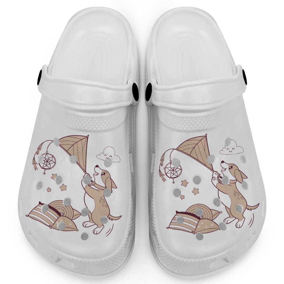 The product unique design you searched for is Whimsical Dachshund with Dreamcatcher Clogs For Kids WHITE belong theme Clogs at Printblur