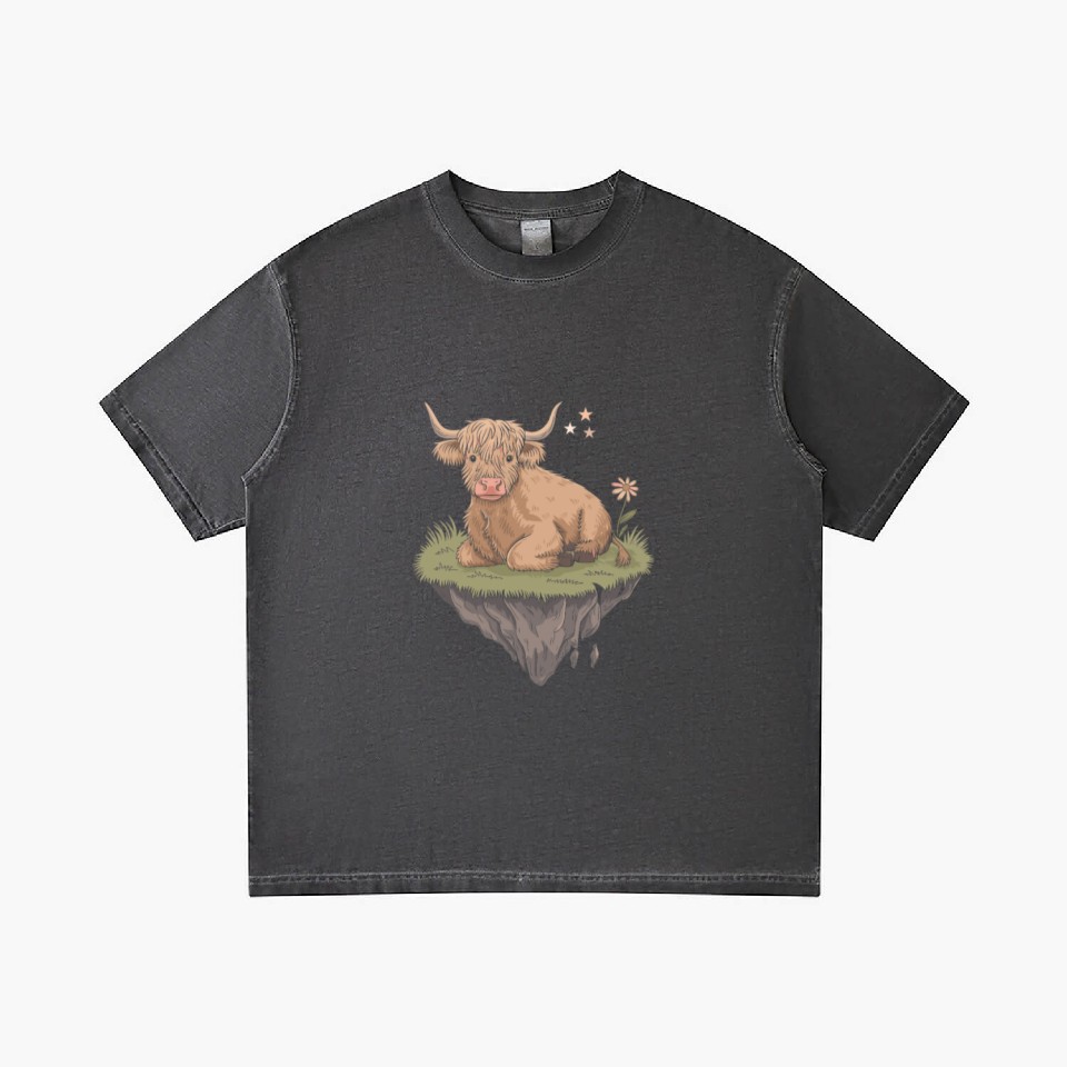 You are contemplating one of the best-selling products Whimsical Escapism: Highland Cow Dreamworld Gradient T Shirts For Men Washed Black belong theme Gradient T-Shirts at Printblur
