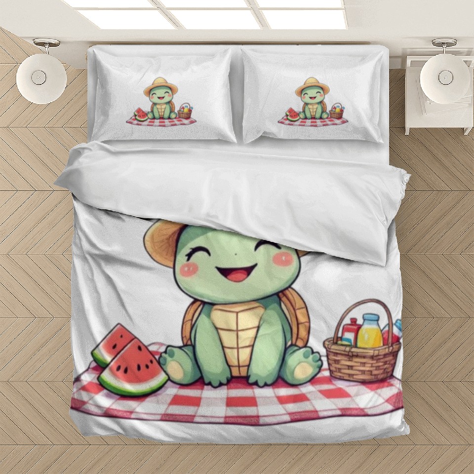 You are seeing a unique and impressive product Whimsical Picnic Turtle Illustration Bedding Sets For WHITE belong theme Bedding Sets at Printblur