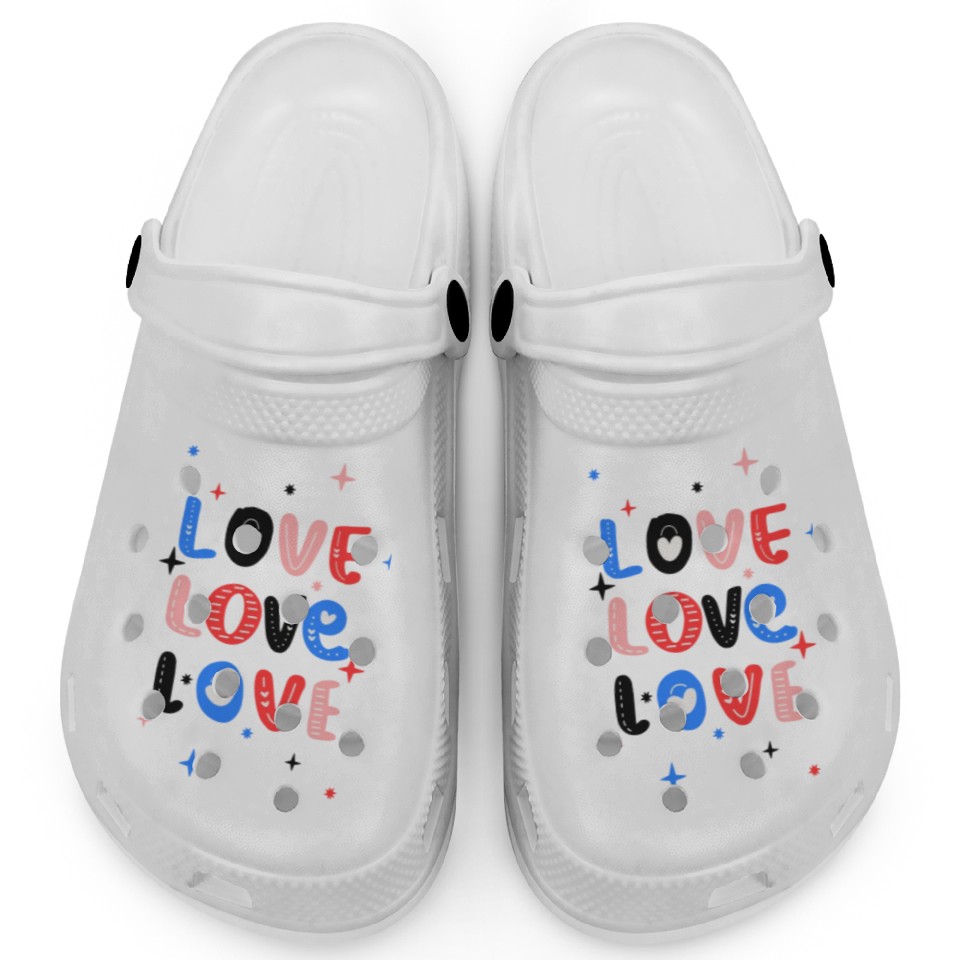 White Red Pink Light Blue Black Bold Valentine Clogs