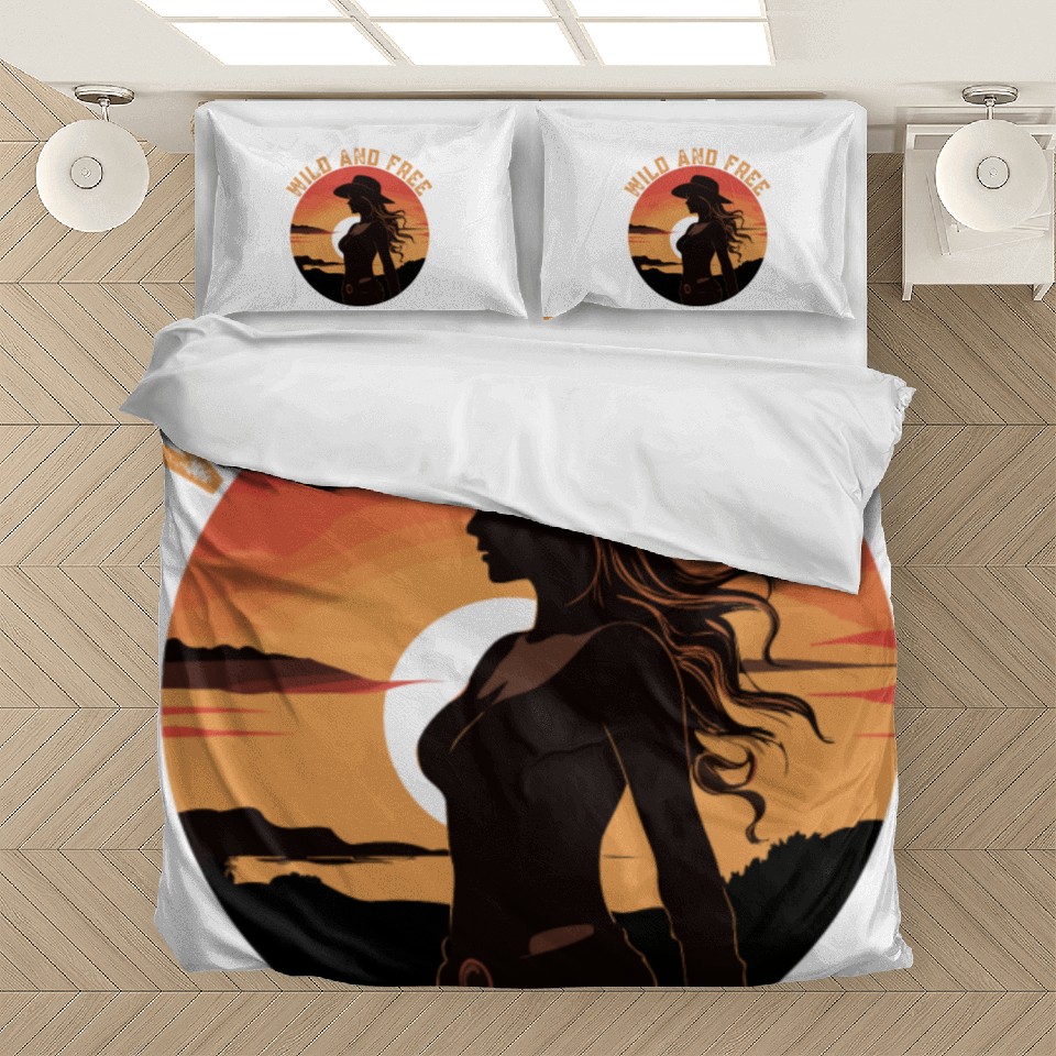 You are viewing an exclusive and elegant product Wild and Free Cowgirl Retro Sunset Bedding Sets For WHITE belong theme Bedding Sets at Printblur