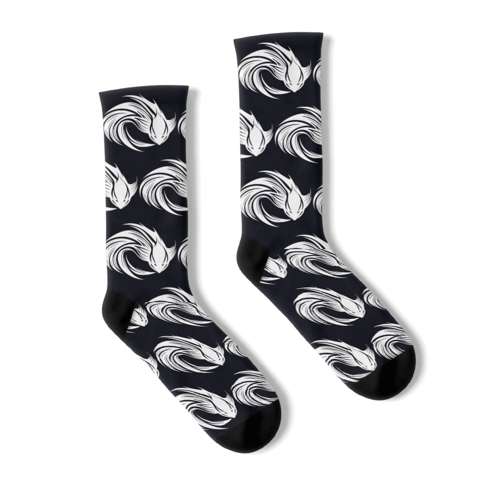 You're looking at the eye-catching product Wild Fighting Fish Tattoo Portrait Socks For Black belong theme Socks at Printblur