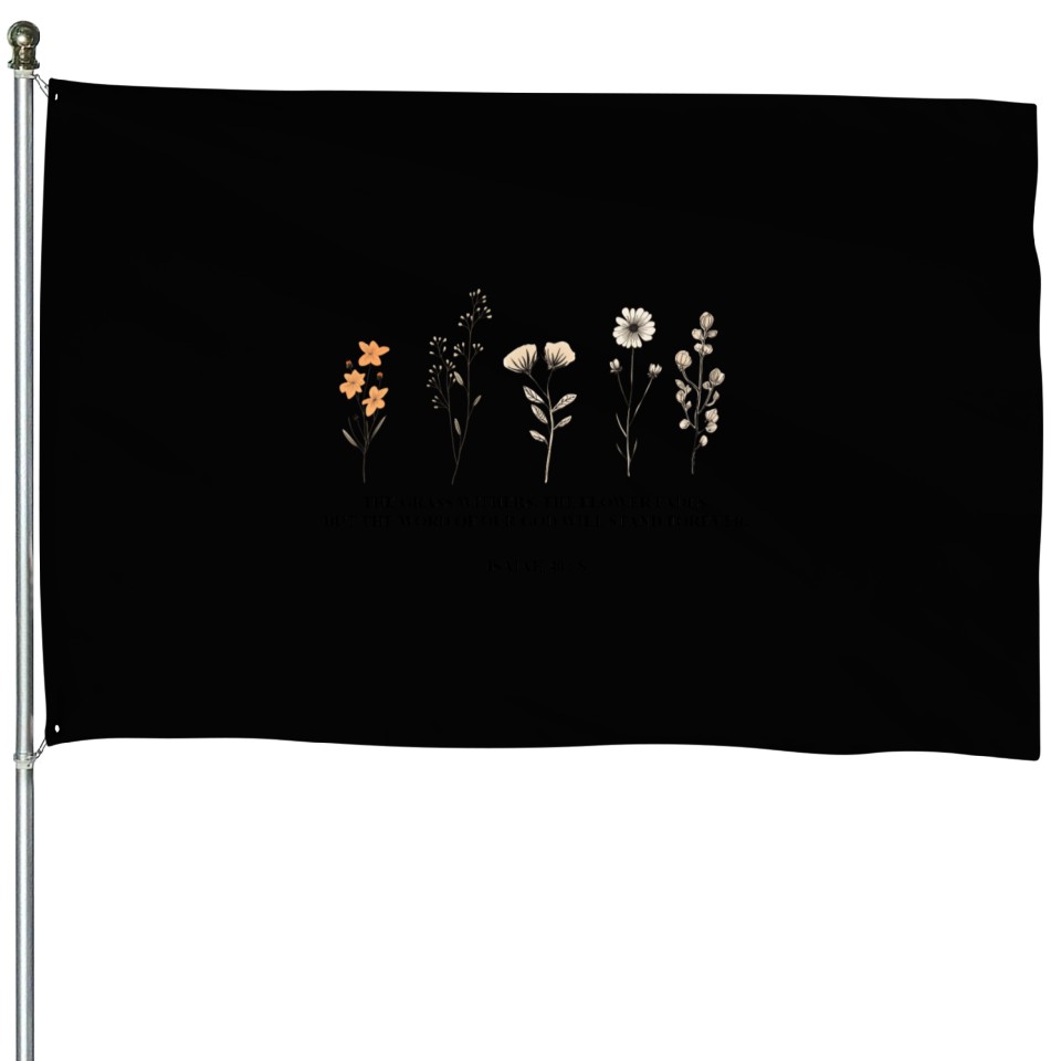 You are shopping for a stunning and trendy product Wild Flowers Bible Verse Floral Religious House Flags For Black belong theme House Flags at Printblur