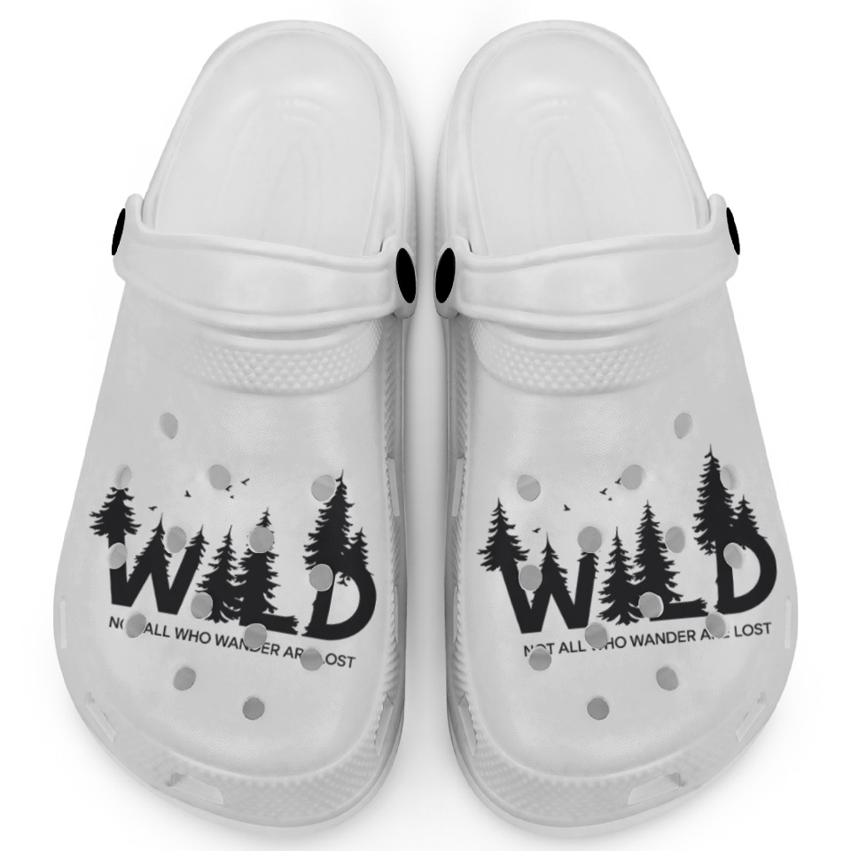 You are seeing a unique and impressive product Wild Forest Hiker Not All Who Wander Are Lost Clogs For Kids WHITE belong theme Clogs at Printblur