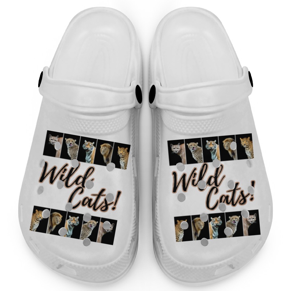 You're looking at the eye-catching product WILDCATS! | Lion, Leopard, Cheetah, Puma, Tiger Clogs For Kids WHITE belong theme Clogs at Printblur