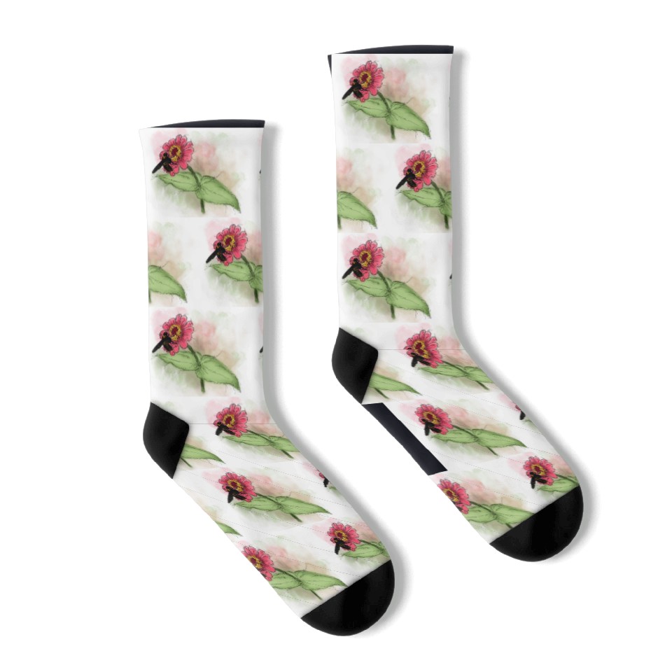 Buy eye-catching Wildflower and Bumblebee Illustration Socks or see more Socks products at Printblur shop now to explore many surprises from our shop!