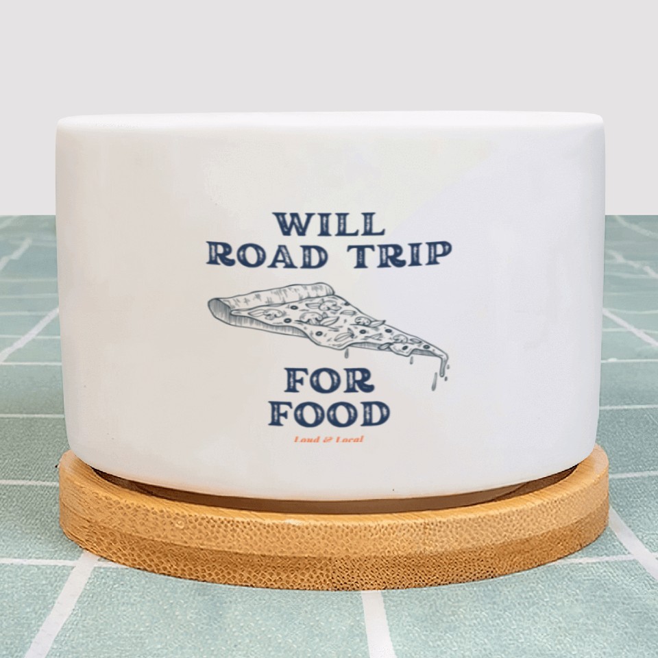 You are viewing one of the trendiest products Will Road Trip for Food Quote Plant Pots For WHITE belong theme Plant Pots at Printblur