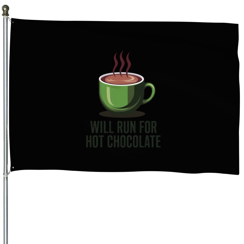 Shop for attractive Will Run For Hot Chocolate House Flags or see more House Flags products on https://printblur.com right now!