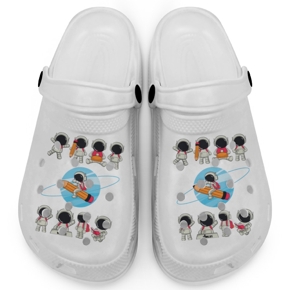 The item hot trend you're looking at is WINKYES - Funny Astronauts Clogs For Kids WHITE belong theme Clogs at Printblur