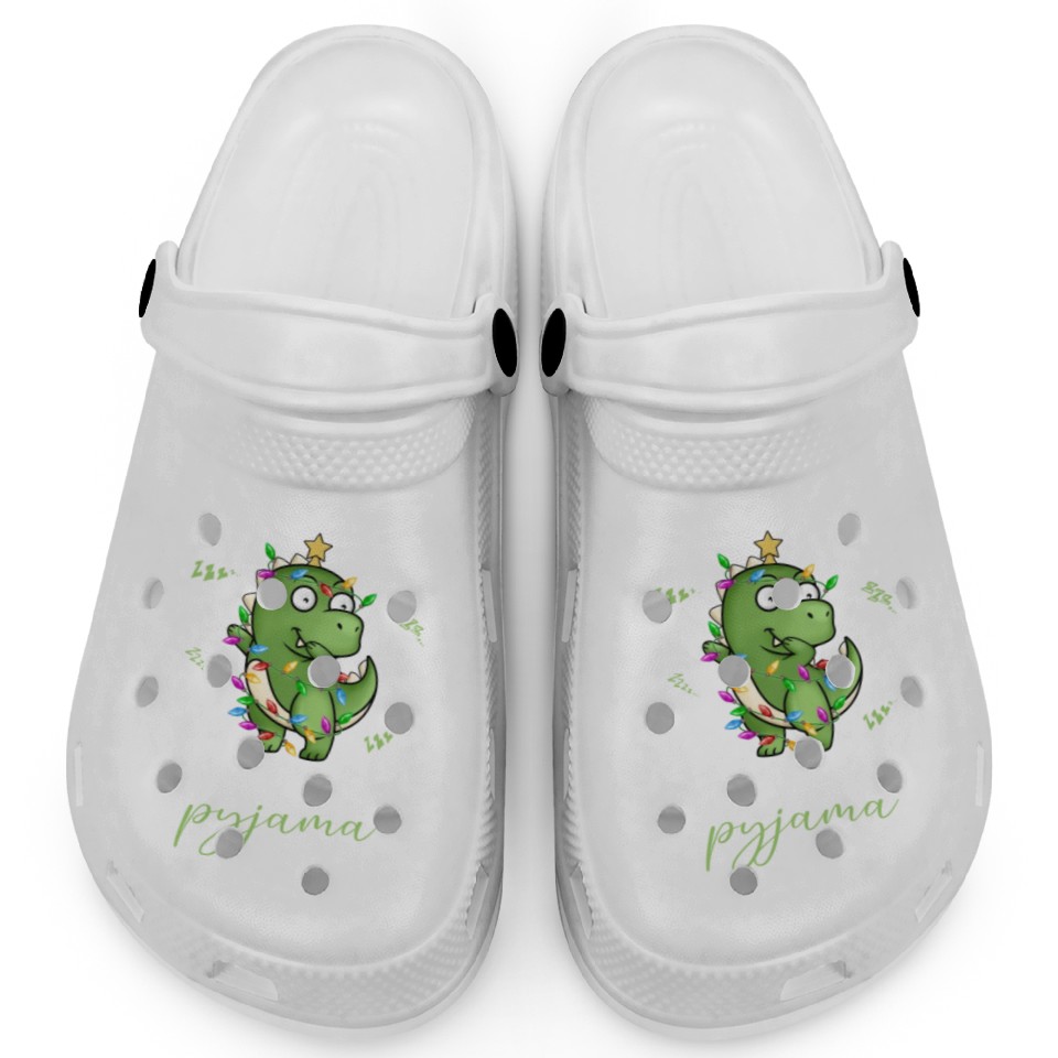 You are seeing a unique and impressive product Winter Christmas Pyjama Dinosaur Trex Clogs For Kids WHITE belong theme Clogs at Printblur