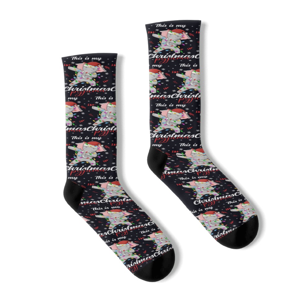You are seeing a unique and impressive product Winter Christmas Pyjama Elephant Socks For Black belong theme Socks at Printblur