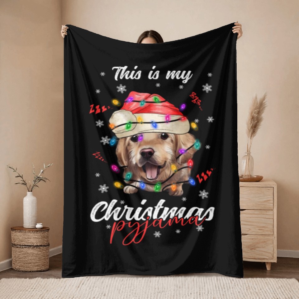 Own fascinating Winter Christmas Pyjama Golden Retriever Throw Blankets or see more Throw Blankets products now from Printblur shop to enjoy your shopping time!