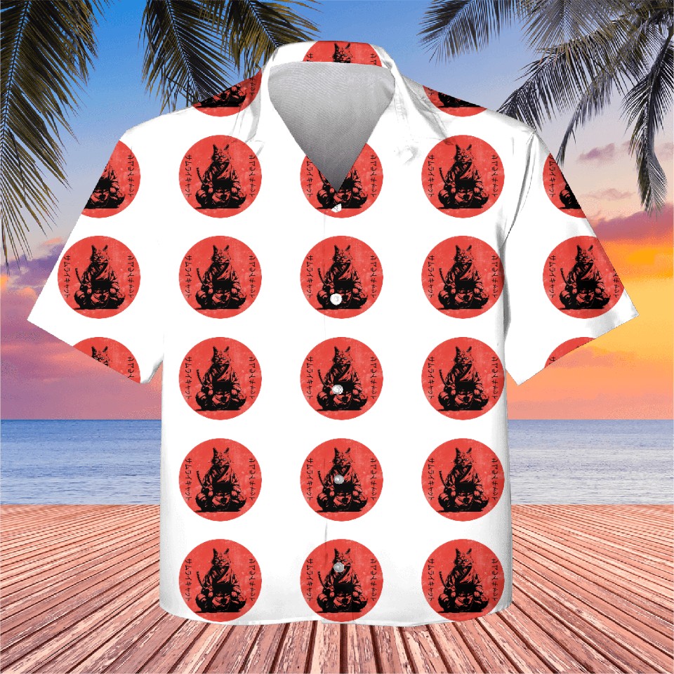 You are shopping for a stunning and trendy product Wise Calm Vintage Retro Japanese Kitty Samurai Cat Kids Hawaiians For WHITE belong theme Kids Hawaiians at Printblur