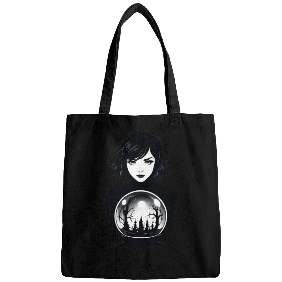 You are shopping for a stunning and trendy product Witchy Woman Gazing into a Crystal Ball Bags For Black belong theme Bags at Printblur