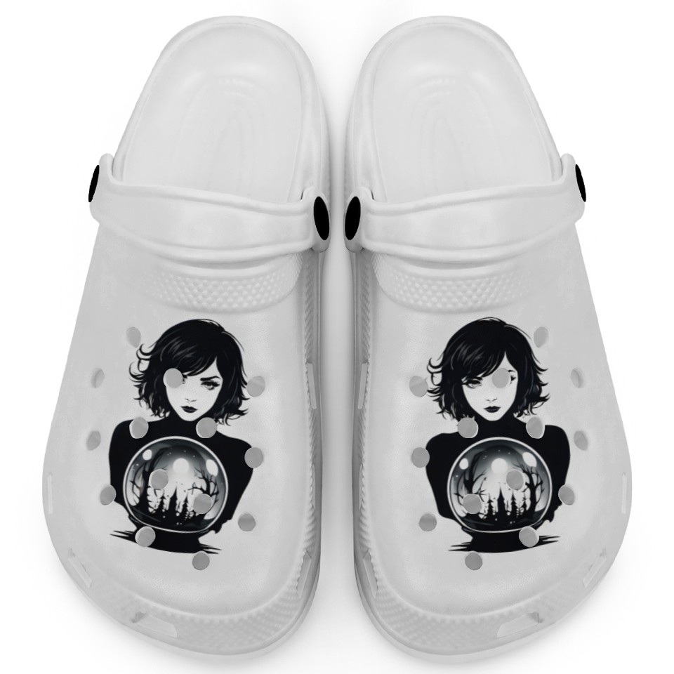 Witchy Woman Gazing into a Crystal Ball Clogs