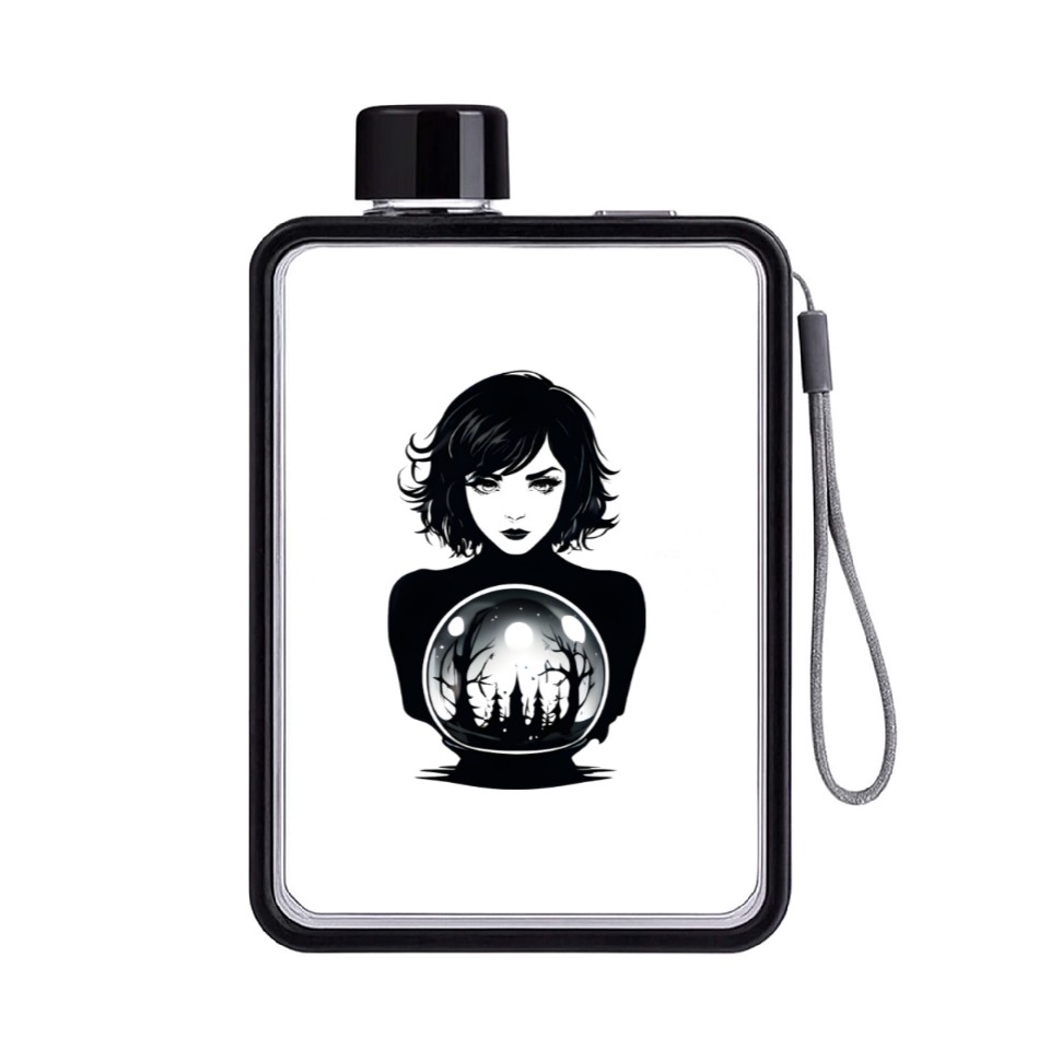 The product unique design you searched for is Witchy Woman Gazing into a Crystal Ball Flat Water Bottles For Black belong theme Flat Water Bottles at Printblur