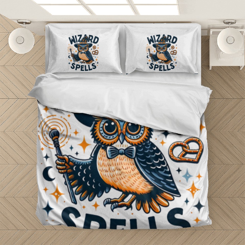 Buy eye-catching Wizard Owl Magical Pretzel Spells Bedding Sets or see more Bedding Sets products at Printblur shop now to explore many surprises from our shop!