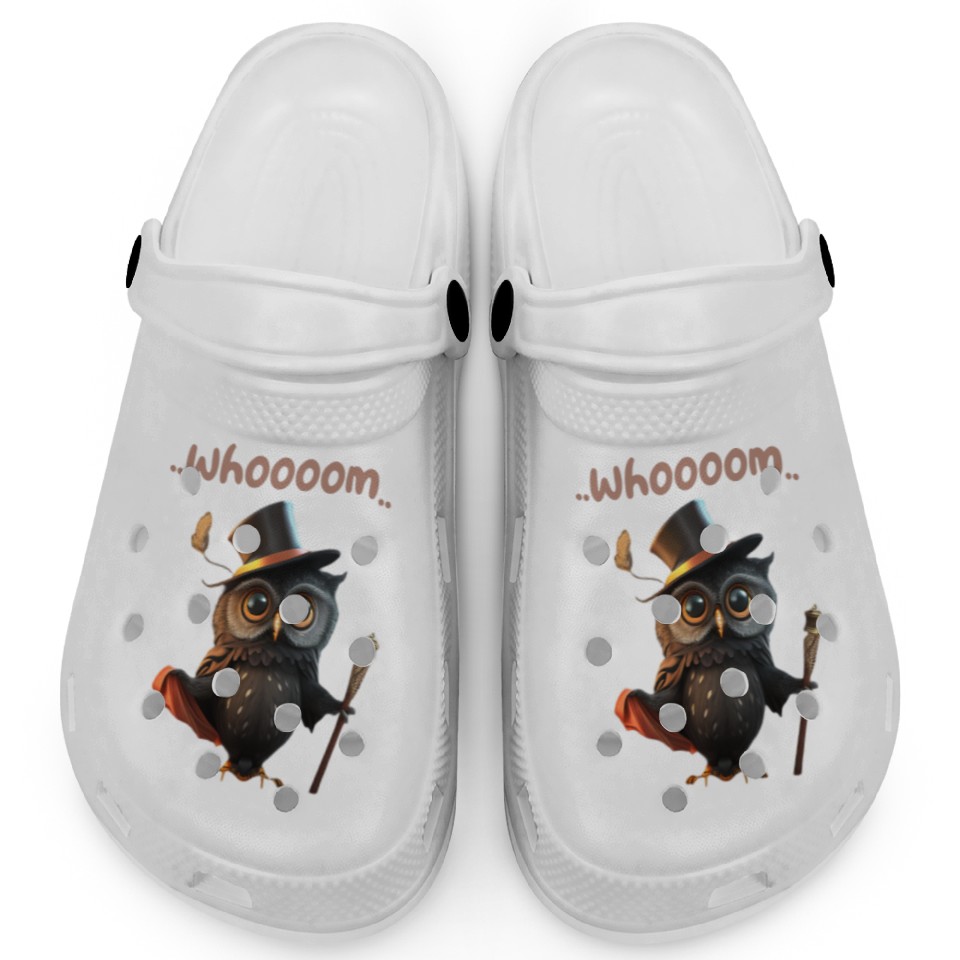 You're taking a peek at the product Wizard Owl - Whoooom Magic Clogs For Kids WHITE belong theme Clogs at Printblur