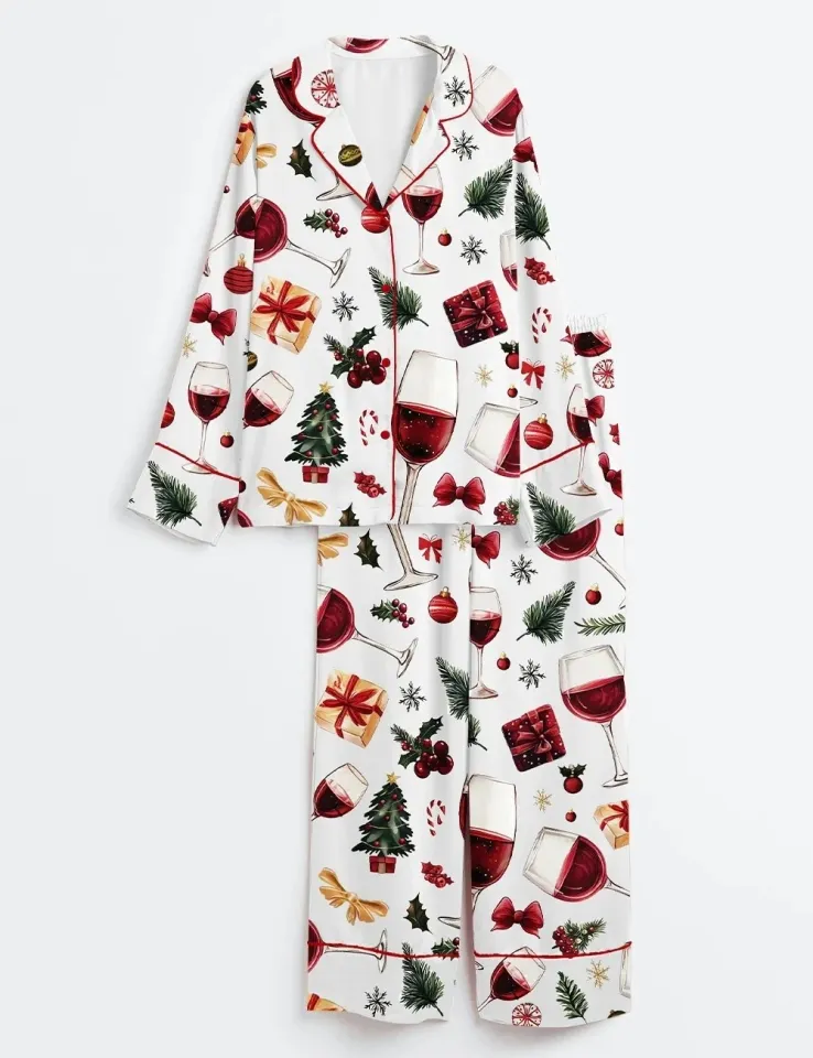 You're looking at the eye-catching product Women’s Wine Glass Christmas Holiday Short Sleeve Pajama Set For Kids belong theme Adult Pajamas Sets at Printblur