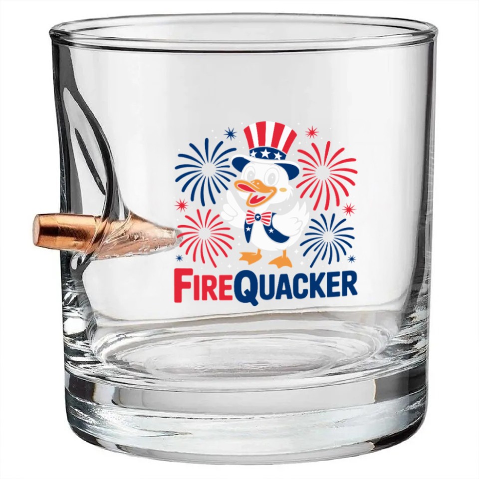 Womens Duck Firequacker Patriotic Fourth of July I Bullet Whiskey Glasses