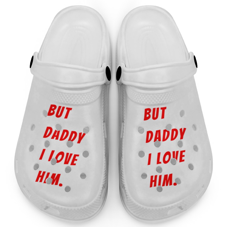 The item hot trend you're looking at is Womens The Funny Saying But Daddy I Love Him Clogs For Kids WHITE belong theme Clogs at Printblur