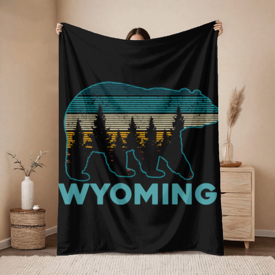 You are viewing one of the trendiest products Wyoming Grizzly Bear Nature Hiking Throw Blankets For Black belong theme Throw Blankets at Printblur