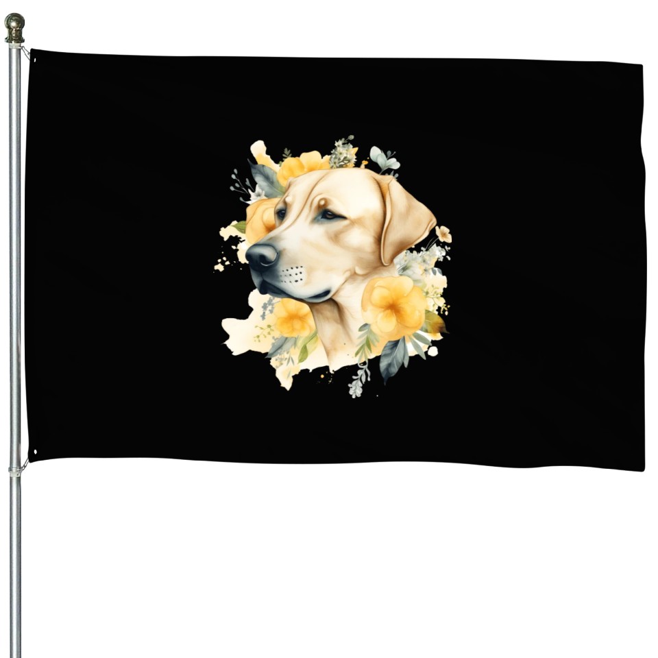 You are viewing one of the trendiest products Yellow Lab Dog Watercolor Floral House Flags For Black belong theme House Flags at Printblur