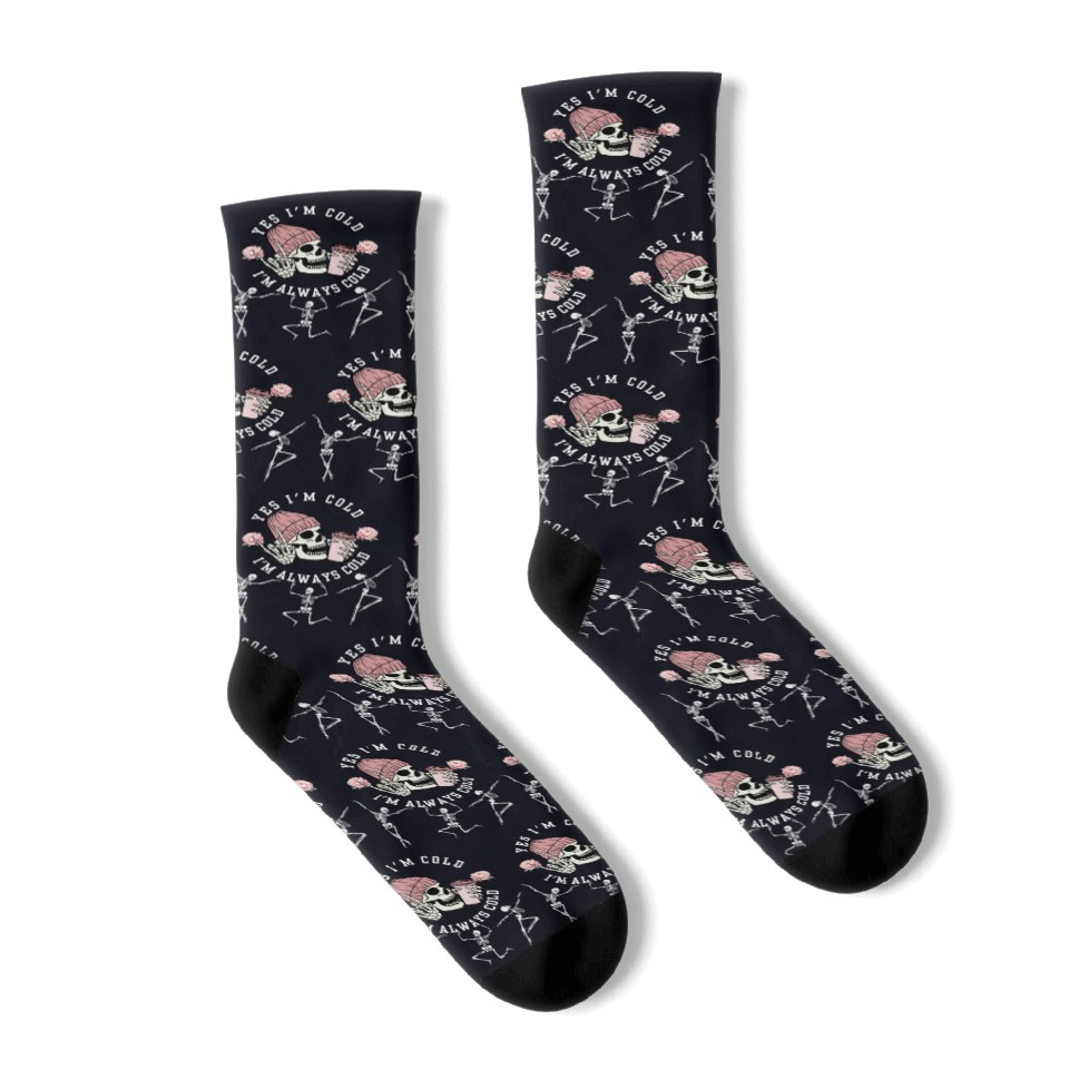 Buy stunning Yes I'm Cold I'm Always Cold Dancing Skeleton Hall Socks or see more Socks products at Printblur right now to receive many amazing discounts!