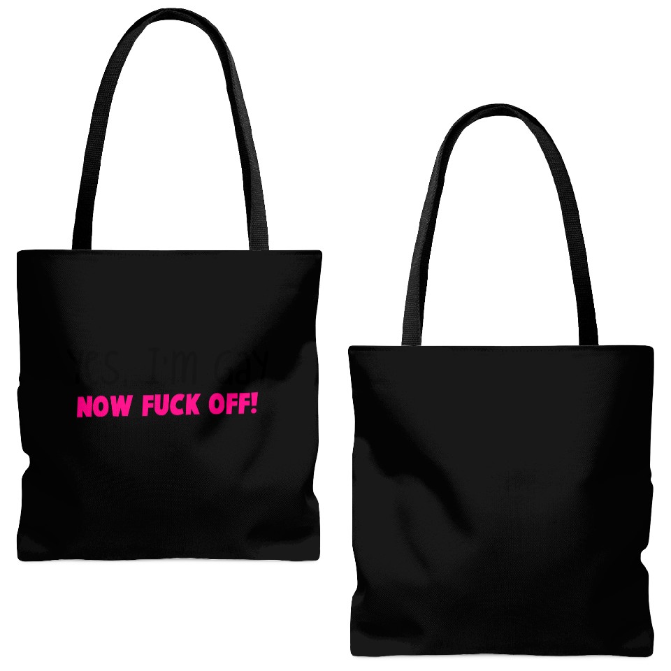 You are viewing an exclusive and elegant product YES I'm GAY- now F*** OFF! Tote Bags (AOP) For Black belong theme Tote Bags (AOP) at Printblur