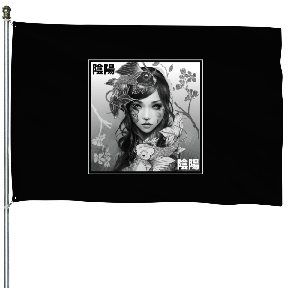 Buy eye-catching Yin Yang Koi Fish Gothic Emo Japanese Cherry Bloss House Flags or see more House Flags products at Printblur shop now to explore many surprises from our shop!