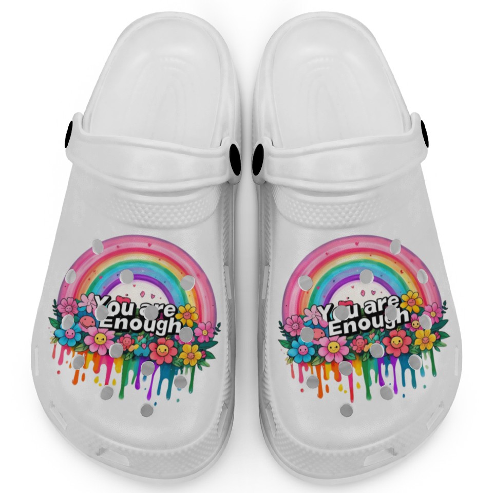 "You Are Enough" Rainbow and Flowers Inspirational Clogs