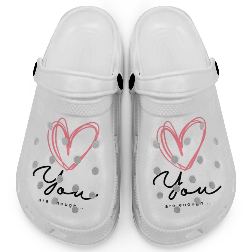 Buy eye-catching You Are Enough - Self Love Heart Design Clogs or see more Clogs products at Printblur shop now to explore many surprises from our shop!