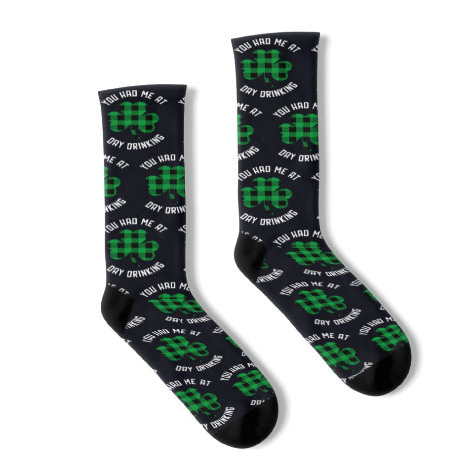 Buy eye-catching You Had Me At Day Drinking Clover St Pattys Day De Socks or see more Socks products at Printblur shop now to explore many surprises from our shop!