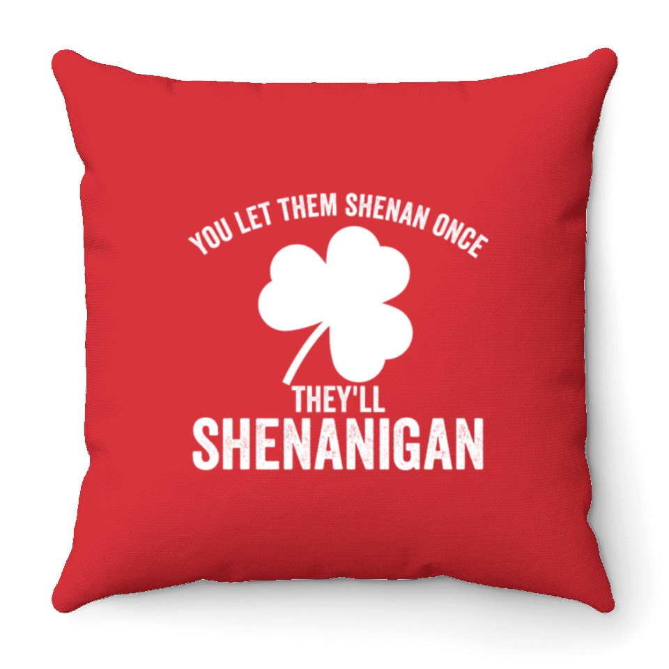 Buy stunning You Let Them Shenan Once They'll Shenanigan Throw Pillows or see more Throw Pillows products at Printblur right now to receive many amazing discounts!