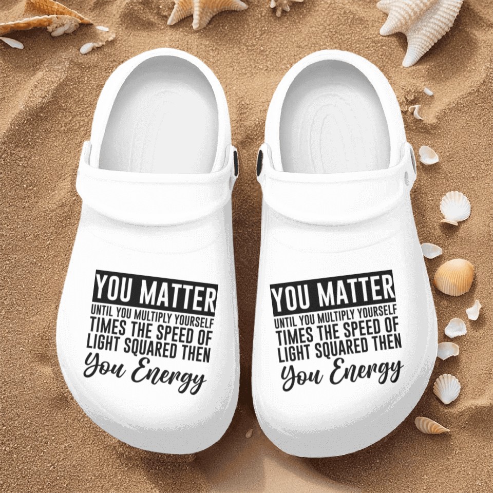 The product unique design you searched for is You Matter Until You x by c2 Then You Energy 4 Nurse Clogs For Men WHITE belong theme Nurse Clogs at Printblur