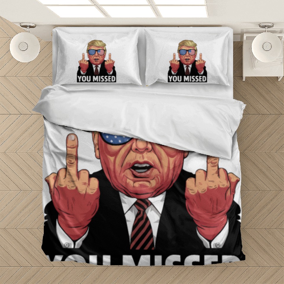 Shop for attractive You Missed Trump 2024 US American Flag Bedding Sets or see more Bedding Sets products on https://printblur.com right now!